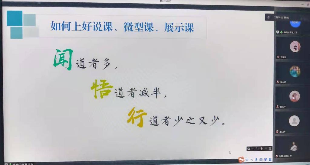 最后说到的常态课是同学们现在接触得比较少的课程类型,骆蕤说道,所谓常态课就得是要常态化,简而言之,就是让学生们多练,让他们自己适应讲台和台下的学生,骆蕤最后用“闻道者多,悟道者减半,行道者少之又少”结束了该次讲座。