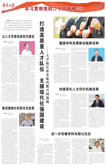 将抢抓“双一流”“双航母”叠加的历史机遇,锚定研究型综合性一流大学的战略目标,发挥一流学科及综合交叉优势,强力推进建制化科研范式变革,形成从基础到应用的贯通式研发体系,深入实施“123人才强校工程”,打造中原地区人才中心和创新高地,为加快实现高水平科技自立自强,全面推进中华民族伟大复兴而不懈奋斗。