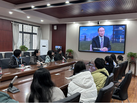 参会师生首先观看学习了张锁江校长做客CCTV10《透视新科技》——《迈向碳中和(三)降碳路线图》栏目的视频。节目中,张锁江校长深入浅出地介绍了未来新能源大幅使用后二氧化碳的排放情况,分析了降碳之路上的挑战和困难,谈及了降碳对百姓生活带来的改变。张校长最后讲到:“碳中和对中国来说是一个机遇,前景是非常光明的,全民应该积极参与碳中和的行动计划。这不仅是科学家的事情,不仅是政府的事情,也不仅是企业的事情,碳中和与每一个公民都有关系。”