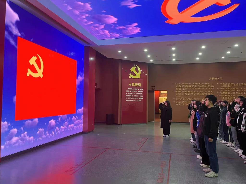 大家跟随着讲解员先后来到先后来到以“不忘初心 牢记使命”为主题的序厅、以“牢记嘱托 践行嘱托”为主题的习近平总书记视察开封厅、以“守住钙源 深学细照”为主题的焦裕禄在开封厅、以“铭记历史 开创未来”为主题的开封红色记忆厅,全面了解开封在不同时期的党史、党建等内容,重温并学习了习近平总书记3次视察开封的谆谆嘱托,了解了焦裕禄同志在开封工作生活的事迹,深切感受到一代代共产党员为革命事业无私奉献、英勇无畏、勇往直前的奋斗精神,不忘初心、牢记使命、砥砺前行的红色精神。参观学习结束后,全体党员来到一楼宣誓厅,一起学习了入党宣誓议程,在刘思影同志的领誓下,面对党旗、紧握右拳,重温入党誓词。铮铮誓言,响彻大厅,充分展现支部党员的责任感、使命感。
