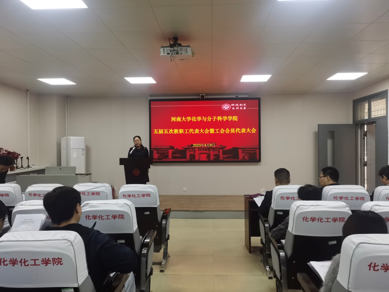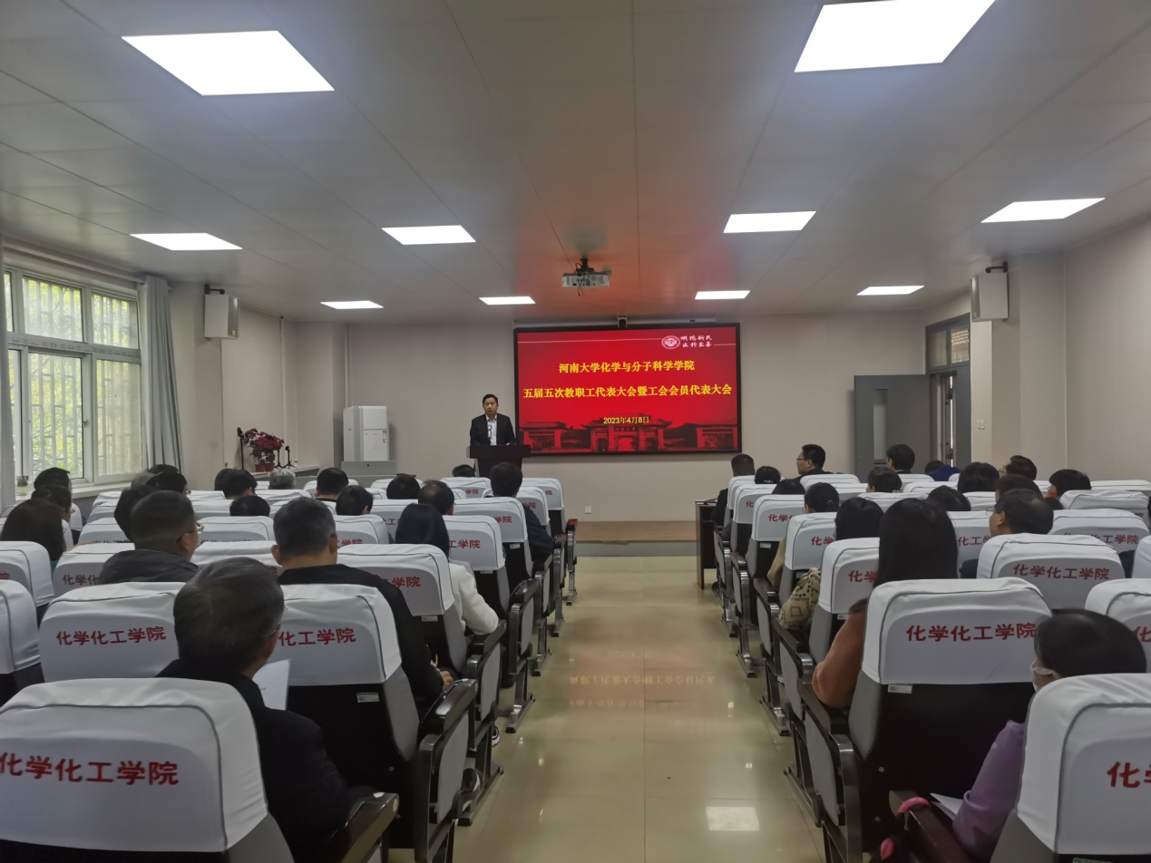 院长柏代表学院作《凝心聚力培根铸魂为推动学院高质量发展不懈奋斗》的工作报告。《报告》全面回顾总结了学院过去一年的工作,对学院在党建引领、教学工作、学科科研、师资建设、人才培养、合作交流和服务提升等方面的工作进行了总结, 并对2023年的工作重点工作进行了部署。《报告》指出,接下来的一年中,学院工作将抓住机遇,直面挑战,以高质量党建引领学院高质量发展,依托“化学学科百年庆典”开展系列庆祝活动,构建高水平创新型人才体系,大力推进学科筑峰工程,提升化学学科影响力。整个报告主题鲜明、思路清晰、目标明确、重点突出、任务具体、措施有力,报告准确把握时势,直面困难,统筹规划,振奋人心。大会书面审议了《学院工会工作报告》和《纳米材料工程研究中心工作报告》。随后会议进入分组讨论环节,七个小组分别讨论审议了以上两个报告,小组讨论秩序井然,气氛热烈,各位代表积极发言,指出问题,提出办法,为学院发展献计献策。