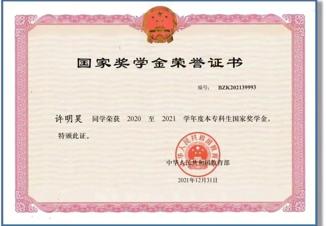 在学习方面,许明昊同学勤奋努力,谦虚谨慎,刻苦钻研,具有较为扎实的专业知识基础。他曾获得“国家奖学金”、“河南省三好学生”、“八叉书库