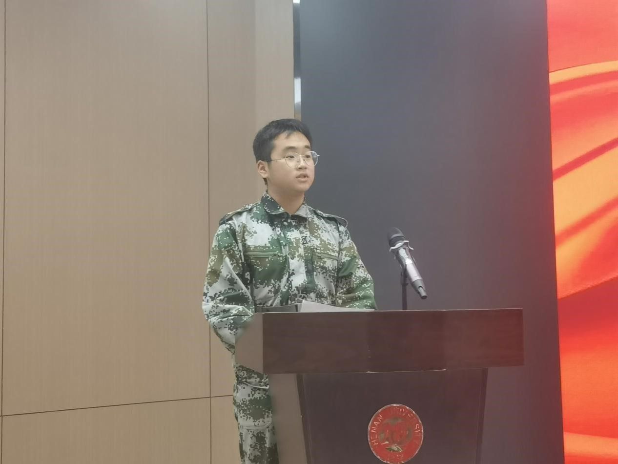 在校生代表、2022级研究生刘莹代表学院全体同学对新生们的到来表示最真挚的欢迎。她分享了自己过去一年以来的研究生生活以及心得体会,建议新生们要明确科研目标,清楚奋斗方向;要怀有梦想,保持学习激情;要充分利用学校的教育资源来提升自己。2023级本科新生张庭珲代表全体新生发言。他表达了对大学生活的憧憬,同时庄严承诺:会秉承“化育万物,学无止境”的院训,刻苦学习,积极进取,不断提升自己的能力。