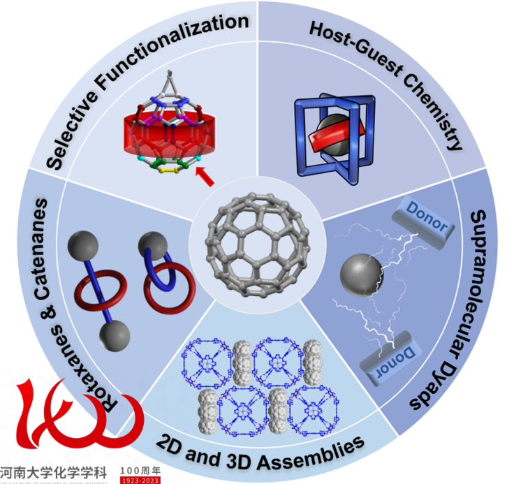 自1990 年首次合成C60以来,富勒烯已经成为有机功能材料领域备受关注的焦点。近年来,它在超分子化学领域开辟了一些新的研究方向。在这篇综述文章中,作者总结了过去十年来富勒烯在超分子化学领域取得的最新研究进展,文章长度约25000字,包含33张图和约500篇参考文献。文章综述的研究进展主要包括以下几个方面:1)利用超分子化学策略实现对富勒烯的选择性修饰;2)富勒烯超分子异质结的构建及其性质;3)富勒烯主客体化学研究,包括富勒烯用于金属、离子和气体的包结,分子钳、大环及分子笼作为主体用于富勒烯的识别、释放及化学反应性能调控;4)利用富勒烯作为封端分子、穿梭子及大环结合位点构建机械互锁分子;5)富勒烯2D和3D组装体的制备及其在电子传输、液晶材料、光催化等方面的潜在应用。此外,由于C60和C70制备工艺的成熟以及价格不断下降,这些为富勒烯超分子化学的进一步发展提供了基础,相信会给太阳能电池、催化及自旋电子学等领域带来新的研究机遇。