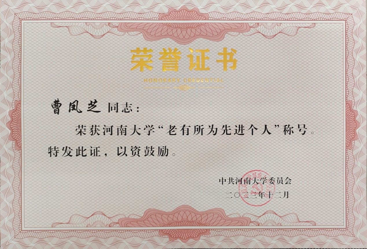 曹风芝老师2007年光荣退休,2010年担任老干部处第一支部(仁和小区)副书记,2023年担任八叉书库