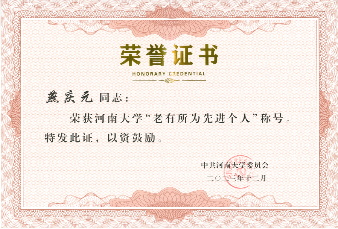 燕庆元老师2000年退休,在校任教40年,桃李满天下。从工作那天起,他就给自己定下目标:在职,为国家培养高等人才,退休,为社会培养教育好子女后代。退休20年来,他的家庭教育成果显著,被大家交口称赞。2023年,被推选为“八叉书库