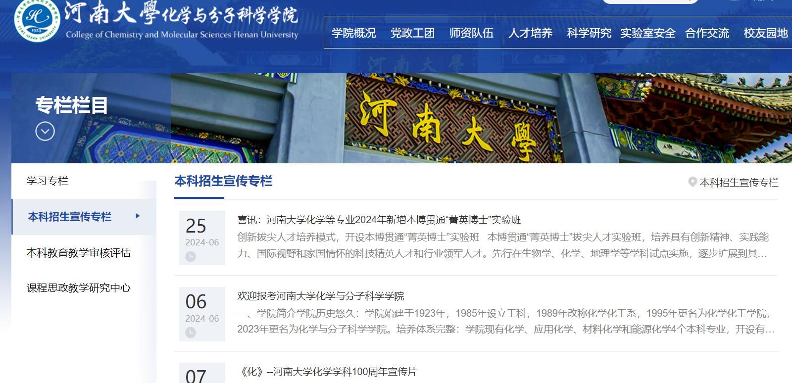 在做好面对面招生宣讲的同时,学院还通过多种形式和渠道,向潜在的学生、家长以及社会公众展示学校的办学理念、教育质量、专业特色、学科优势等,从而吸引更多优秀的学生报考。执行院长徐元清参加学校招办组织的院长说专业线上直播,胡卫平教授、付记亚教授作为宣讲专家参加了学校招生线上直播。2023级本科生王舒心录制了《学姐说专业》招生宣传视频。在学院官方网站开辟招生宣传专栏,介绍学校和学院招生政策,学院微信公众号及时推出专业介绍和招生计划等信息,尤其是对我校化学等专业2024年新增本博贯通“菁英博士”实验班进行重点宣传。开通招生咨询电话,报考期间每天安排专人负责接听,线上线下相结合,大力推动招生宣传工作。