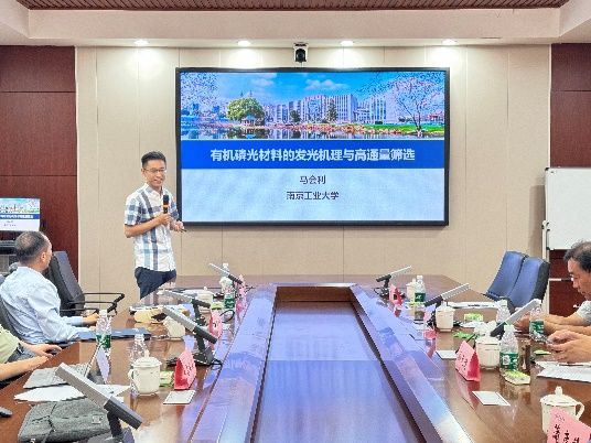 马会利的报告题目为“有机磷光材料的发光机理与高通量筛选”。在报告中,他详细介绍了研究背景及工作内容,提出新型磷光材料是前沿新材料的重要发展方向。通过构建激发态组分模型,阐明了有机磷光来源,并提出强氢键提升磷光性能的理论机制,应用拓展于离子型磷光材料,发展了磷光分子描述符来表征磷光效率和寿命,并逐渐成为实验设计磷光分子的理论依据。