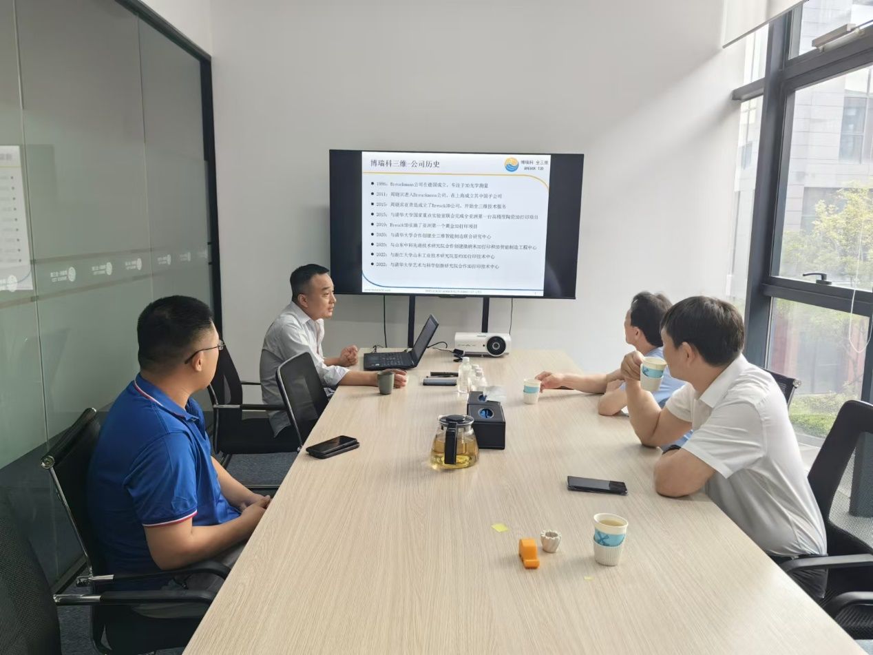 8月14日下午,徐元清一行到青岛博瑞科增材制造有限公司交流。公司总经理周晓斌详细介绍了博瑞科全三维实验室的发展历程和现状。双方就在3D打印材料的开发、纳米材料在3D打印领域的应用,以及学生实习实践及就业等方面的合作达成了诸多共识。