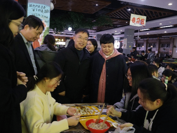 党委书记常凤香老师、院长陈永明老师、执行院长徐元清老师以及辅导员老师们与同学们一起包饺子、话家常,感受化院的温暖。随着活动的开始,同学们三五成群,或站或坐,围绕着一张张摆满饺子皮、馅料和工具的桌子,欢声笑语不断。大家纷纷卷起袖子,加入到包饺子的队伍中。