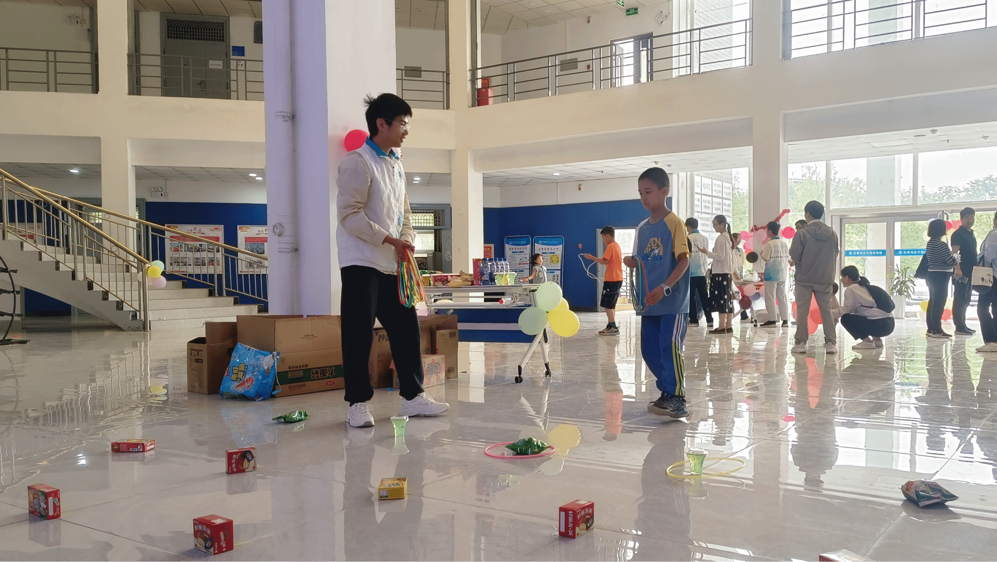 活动当日,学院内洋溢着欢快的氛围。志愿者们提前到达场地,按照活动要求精心布置,为孩子们营造出充满童趣的游戏环境。本次志愿活动精心设计了四个游戏环节:“扔沙包”、“乒乓速递”、欢乐套圈”、快乐跳绳”。活动形式丰富多彩,活动乐趣无穷无尽。孩子们的喜悦化作道道抛物线,活力与毅力在游戏中释放并成长,参与和胜利的欢笑余音绕梁。志愿者们参与组织与引导,并且为孩子们发放奖品,同时拍摄活动精彩瞬间,留存志愿服务影像资料。