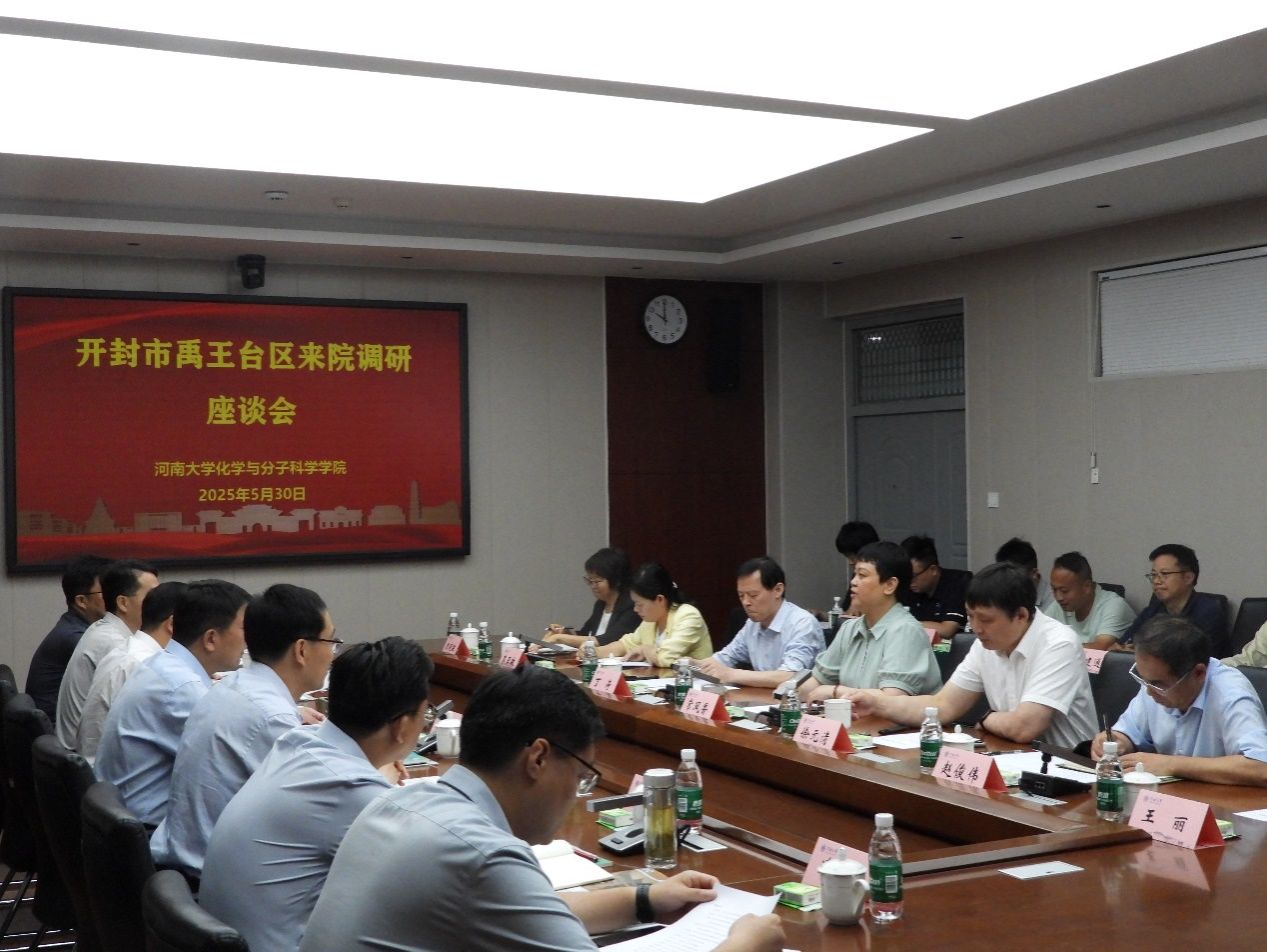 220会议室举行,由常凤香主持。常凤香首先对禹王台区政企代表团的到来表示热烈欢迎,称此次交流是双方共聚一堂、共绘蓝图、持续深化合作的重要时机。学院执行院长徐元清详细介绍了学院发展历程、科研平台建设、人才队伍结构、代表性科研成果及未来规划,并着重阐述了八叉书库