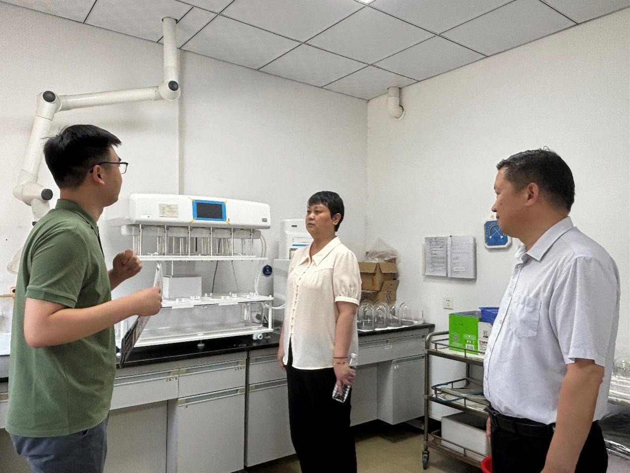 在国药集团容生制药有限公司,常凤香一行与公司领导班子成员围绕“绿色化学工艺优化”关键技术进行了交流。总经理胡延雷详细介绍了公司的发展情况,作为国药集团在豫重点布局的化学制药企业,公司拥有年产小容量注射剂20亿支、冻干粉针剂2亿支、固体制剂30亿片、原料药20吨的生产能力和185个药品批文,其研发的新药注射用甲泼尼龙琥珀酸钠填补了国家空白,荣获河南省科技进步二等奖和科技成果二等奖。常凤香书记指出,学院近年来在催化化学、超分子化学等领域取得多项突破,可为企业提供技术攻关支持,也希望更多优秀毕业生能入职国药容生。