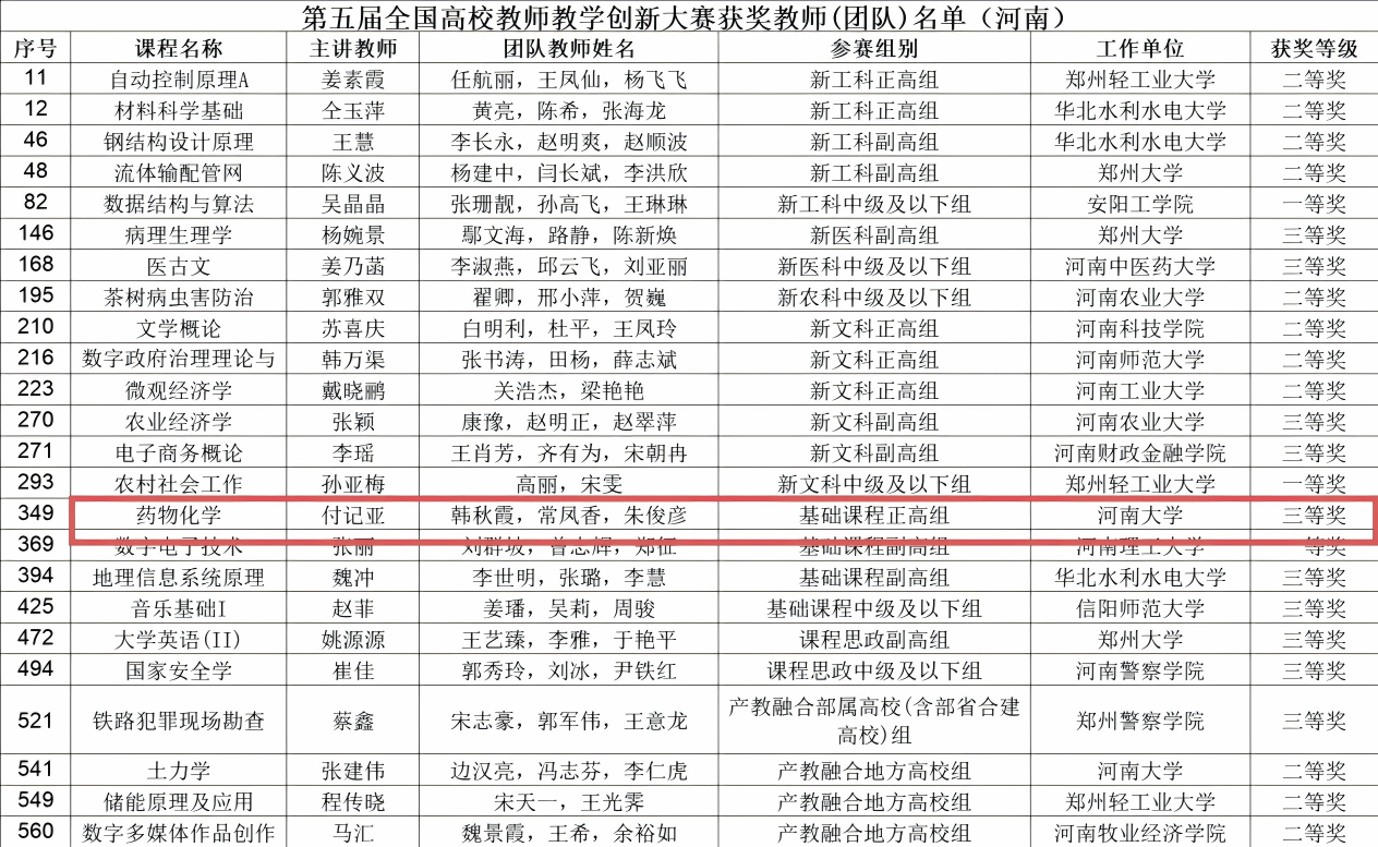 付记亚老师团队(课程《药物化学》,参赛组别为基础课程正高组)在全国赛场上也绽放光彩,成功斩获三等奖。付记亚团队深耕教学创新,在教学理念更新、教学方法探索与教学实践落地中持续发力,其精彩的教学展示不仅展现了个人与团队的教学实力,更折射出八叉书库