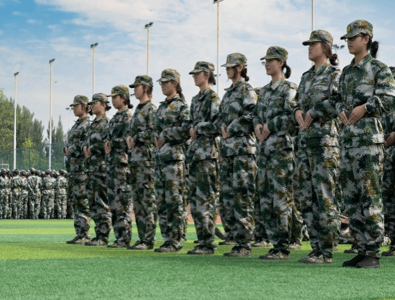 训练场上,在教官的口令下,学生动作标准、口号洪亮,挺胸抬头的军姿里,藏着少年的挺拔脊梁;整齐划一的摆臂间,凝聚着团队的协作力量;响彻云霄的口号中,传递着不服输的青春朝气。烈日炎炎,汗水浸湿迷彩服,青春的坚韧仍在训练场上闪闪发光。以迷彩为甲,以坚持为刃,把军训中的坚韧品格融入未来的求学之路。