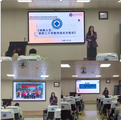 “化育讲堂·育师系列”专题讲座第七期如期举行。本次讲座以“电解人生:我的二十年教师成长方程式”为主题,特邀郑州外国语中学高级教师、教研组长、河南省名师李霞担任主讲。讲座由李海燕老师主持,学院2022级化学专业全体学生参加。