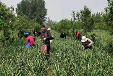 蒜农热情招待到来的老师们。据蒜农介绍,由于今年蒜薹销售价格低廉,雇人抽取的成本要远远高于蒜薹的收购价格,但是如果蒜薹不及时抽出来,会影响大蒜的产量。目前家中因缺少劳动力,还有十几亩地的蒜薹没有抽,焦急万分。老师们纷纷安慰蒜农,积极学习抽蒜薹的技巧。经过几个小时的劳动,几亩的蒜薹已抽取完毕。蒜农对老师们的帮助表示感谢。