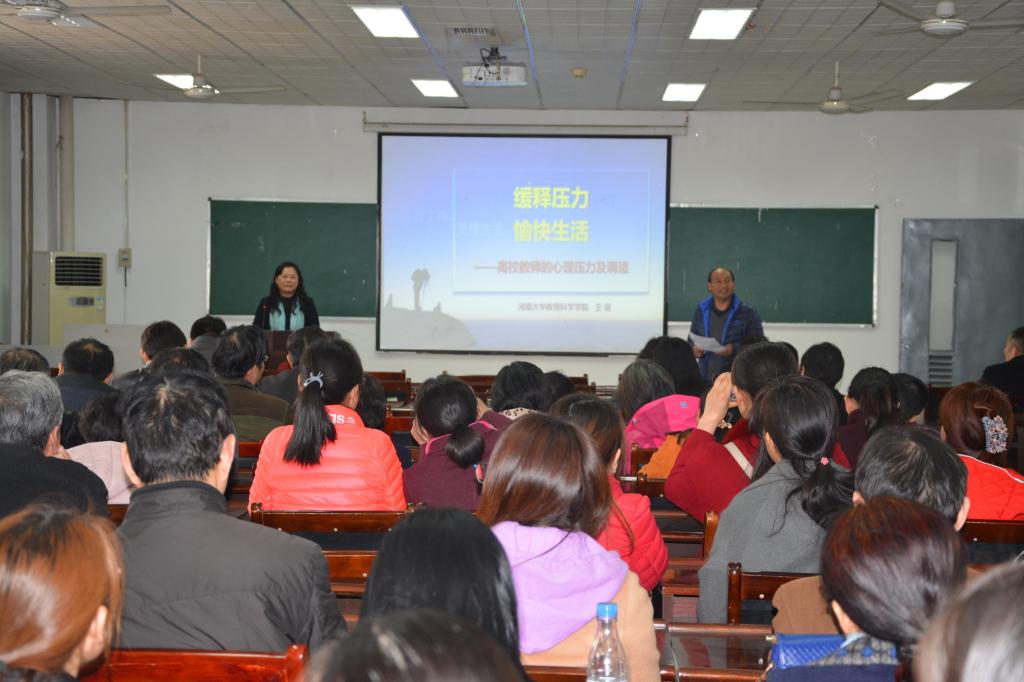 美丽三月,美好人生。3月15日下午,化学化工学院邀请我校教育科学学院王瑶教授为女教职工作“缓解压力,愉快生活”为主题的健康知识讲座。学院全体女教工、部分男教工参加,讲座由学院工会主席、副院长杨更须主持。