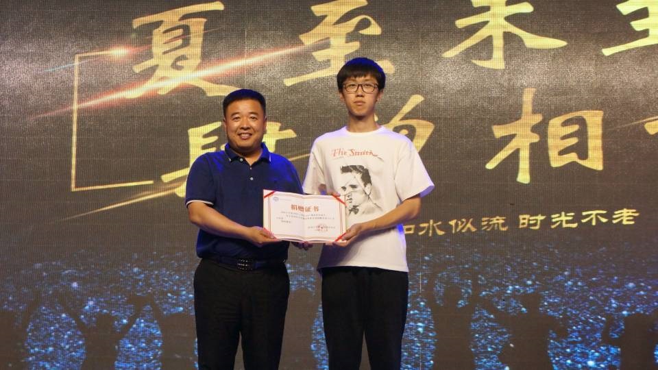 2019届毕业生在“520毕业季1元捐”活动中捐款521元,我校校友会副主任刘会军对此表示感谢并颁发奖状,毕业生代表李强伟上台领奖。