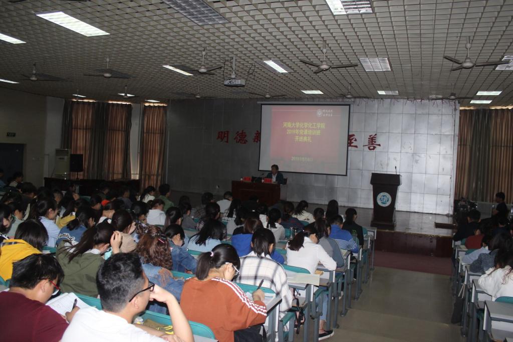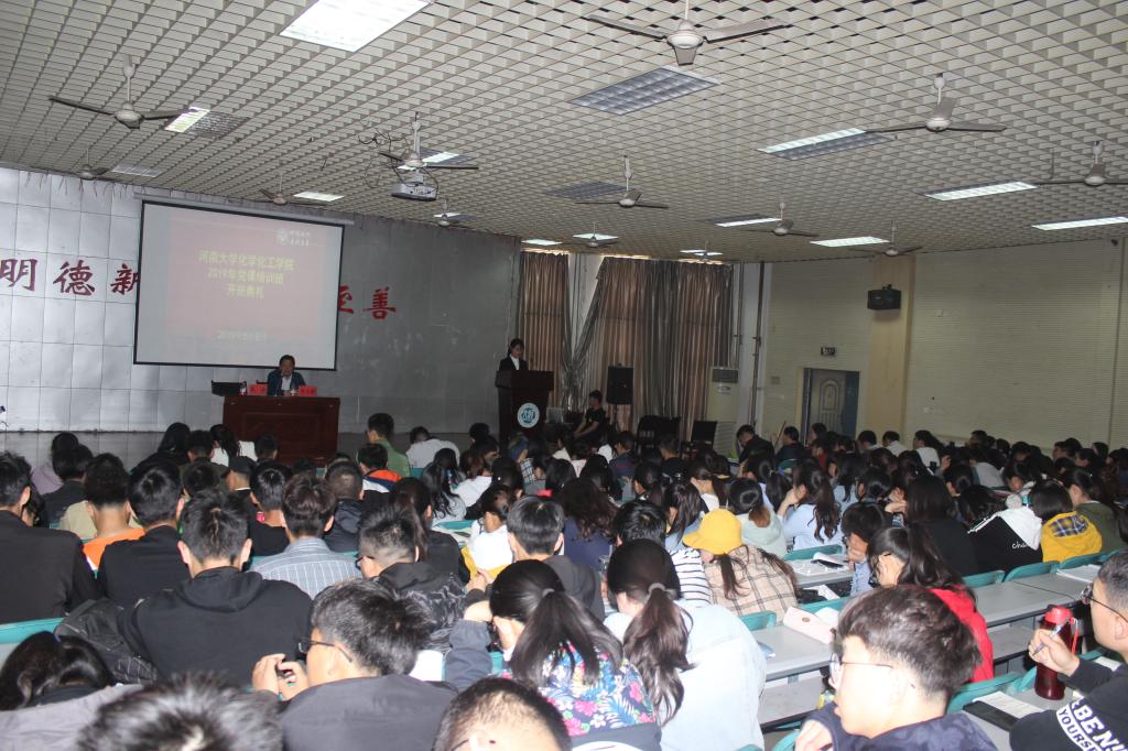为加强对入党积极分子的培训,扎实做好学院入党积极分子培养和党员发展工作。5月6日中午,化学化工学院2019年党课培训班开班典礼在金明校区圆形报告厅顺利召开。学院230余名入党积极分子培训学员和各年级辅导员老师参加典礼。开班典礼由学院党委副书记马文海主持。