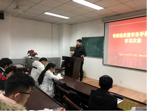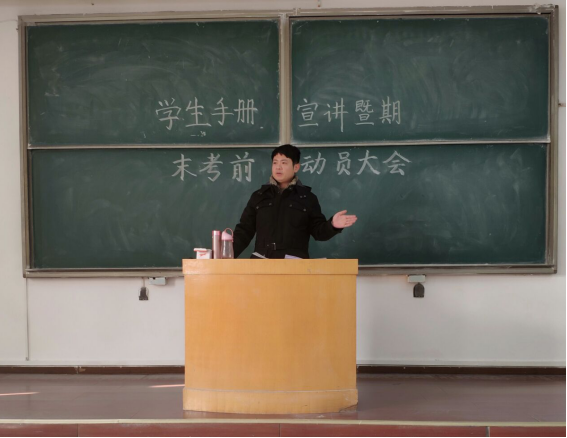 积极响应学校号召,于2018年12月27日至28日连续两天举办了期末考前动员暨《学生手册》学习大会。