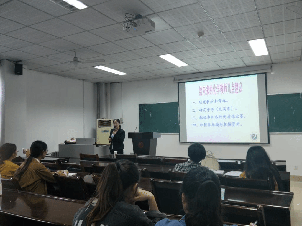 9月21日下午,化学系于学院226会议室举办实习培训讲座, 开封市集英中学高级教师刘宁应邀出席担任主讲,全体2015级化学(师范)专业学生及2018级学科教育研究生参加此次会议。