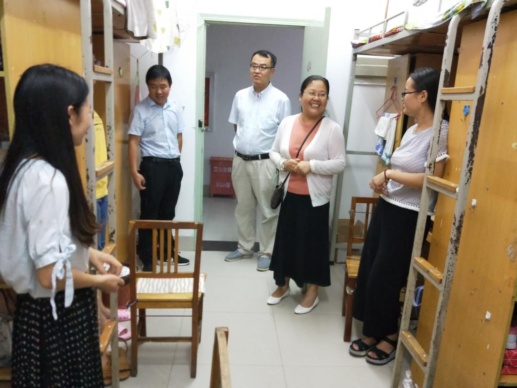 党委书记乔梁、常务副院长柏䶮、副院长杨更须、党办主任王路娟、行政办公室主任刘学军以及18级本、硕新生辅导员商华文和吴玉锋一行,前往学生宿舍慰问2018级新同学。