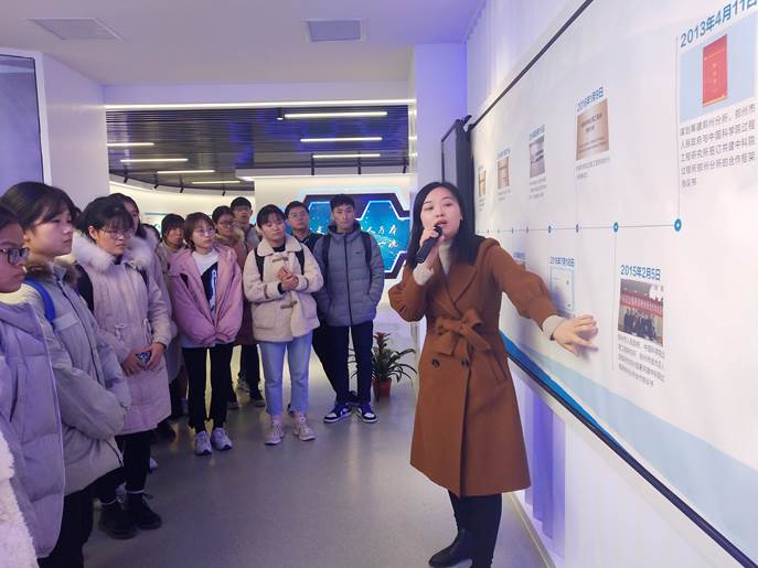 在郑州分所智汇谷园区展厅,科技事业部主任、院长助理张建敏向同学们详细介绍了郑州分所的建设历程、创新产品,及前沿动态,给大家带来了一场视听盛宴,充分调动起了在场学生对科研探索的积极性。自主参观阶段,同学们对自己感兴趣的产品继续进行深入了解。在杨金园区实验室,实验室里各式各样的设备,新奇有趣的实验深深吸引着在场的每一名同学,其中生物3D打印技术,无氧实验操作更是引人入胜、令人着迷,令大批学生为之驻足。在参观实验室的过程中,同学们针对感兴趣的话题与郑州分所研究人员进行了交流,有效提升了同学们对科学前沿工作的认识。