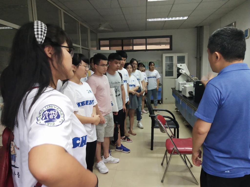 设有无机化学、分析化学、物理化学、有机实验室等不同类型的实验平台。同学们按自己的兴趣分别走进不同的实验室进行参观和交流。实验室老师根据不同的实验类型,分别从仪器构造、实验原理、使用方法、实际用途等诸多方面给同学们热情地进行讲解。同学们对实验室器材、教学设施和先进的仪器设备表现出了浓厚的兴趣,纷纷表示学习到了很多实践知识,见识到了许多先进的仪器,开拓了自己的视野。此次参观实验室,大家对专业特点、科研实验有了更加深入直观的理解,对于培养专业兴趣、激发学习热情、增强实验操作能力起到了良好的推动作用。