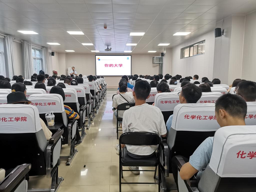 最后,副院长刘学军和化工专业的郭泉辉老师对新生进行了专业教育。刘学军向新生介绍了专业课程设置、学院师资情况以及学院教风学风等,讲解了学院整体学科的发展动态,同时他向化学类新生介绍了化学和应用化学在专业课设置上的区别,研究方向的差异,就业选择的不同,为同学们对接下来选择化学还是应用化学提供了帮助。郭全辉向化工班新生详细介绍了化学工程与工艺专业特点、专业发展现状、专业学习方法以及未来职业前景等,为新生树立专业学习信心。