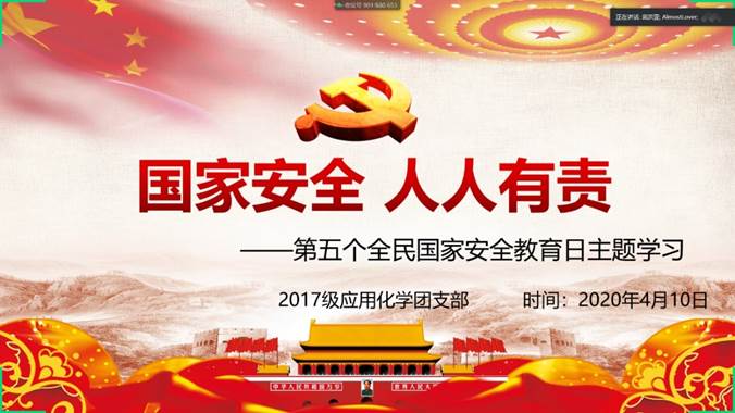 2020年全民国家安全教育日宣传教育活动方案》的要求,4月3日-15日期间,化学化工学院积极组织全院师生扎实开展了一系列内容丰富、形式多样的“全民国家安全教育日”主题教育活动。