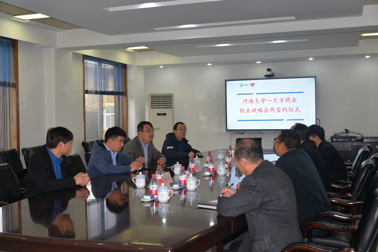 翟新礼对天方药业的邀请和接待表示感谢,并对公司近年来的快速发展表示祝贺。在简单介绍了化学化工学院的近况之后,他说,校友工作是学院工作的重心之一,今后学院将不断加大力度,通过多种形式,让校友们了解学院、关心学院、支持学院。他同时希望双方能够不断加强校企合作,提升学院服务地方经济的能力,并推动公司事业的发展。