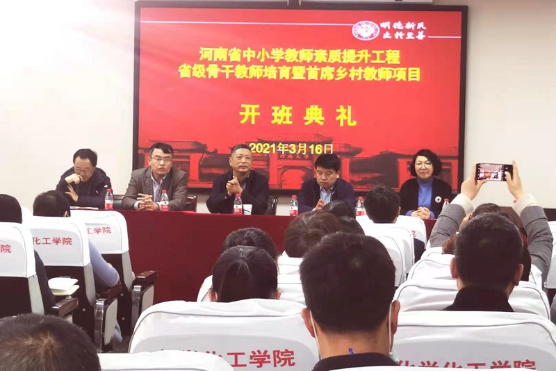 3月16日上午,艳阳高照,鲜花盛开,由我校承办的河南省中小学教师素质提高工程化学学科省级骨干教师培育暨首席乡村教师项目开班典礼在化学化工学院学术报告厅举行。远程与继续教育学院副院长刘玉振,化学化工学院党委书记翟新礼、副院长刘学军等出席,化学化工学院院长助理许英教授主持开班仪式。