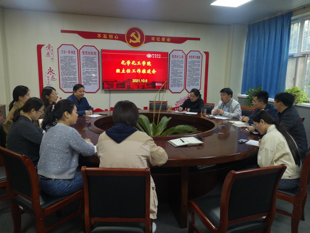 班主任工作的前期准备情况。翟新礼解读了《化学化工学院班主任工作管理办法》。他表示,实行班主任管理制度,一定程度上是对辅导员工作的一种补充,启动此项工作,让新进青年教师在学生的专业教育和学术引领上发挥作用,能够在很大程度上提升本科生的培养质量。要做好班主任工作,首先要有责任心,并且需要处理好科研、教学和学生管理等工作的关系。
