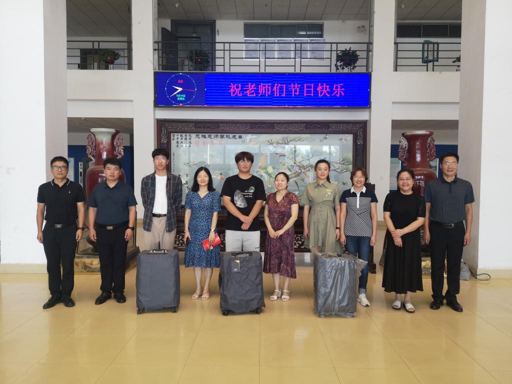 翟新礼、柏䶮等代表学院向三位教师子女赠送了纪念品并合影留念。