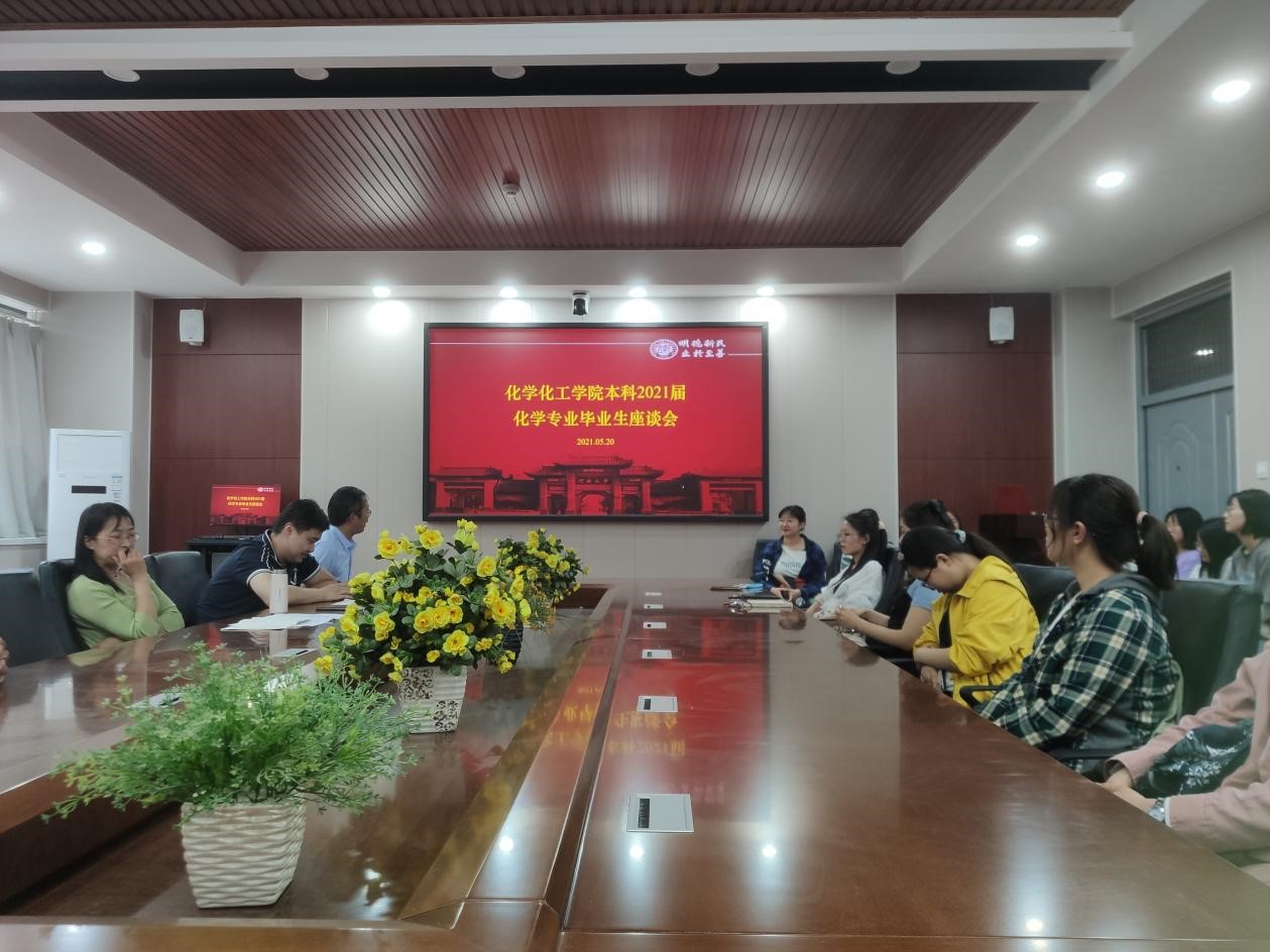 召开2021届化学专业毕业生座谈会,副院长刘学军、化学系书记冯彩霞、主任李亚敏、副主任常海波、徐浩、王冠,以及部分化学专业毕业生参加了本次会议。