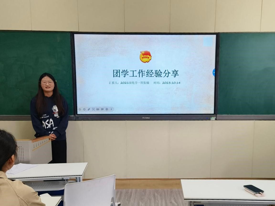 2021级化学第一团支部团支书张楠强调了团支书分工合作以及组织内部建设的重要意义,鼓励团支书们积极奋斗、勇于争先,增强团组织的凝聚力和活力,为团组织的长远发展注入全新的动力。2022级化学第一团支部团支书王媛媛分享了调动支部团员积极性的重要意义,她表示,支部团员应在活动中积极表现,充分发挥先锋模范作用;日常活动中,支部成员也应活跃于社会服务、志愿服务中。
