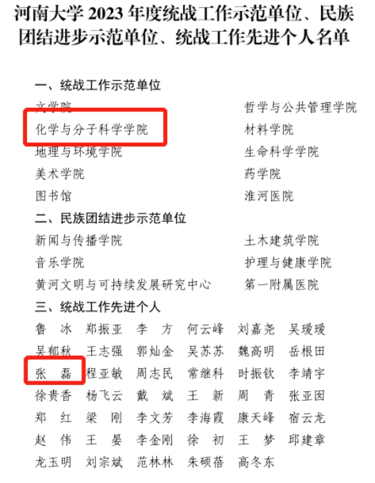 统战工作示范单位,统战委员、副院长张磊荣获统战工作先进个人。