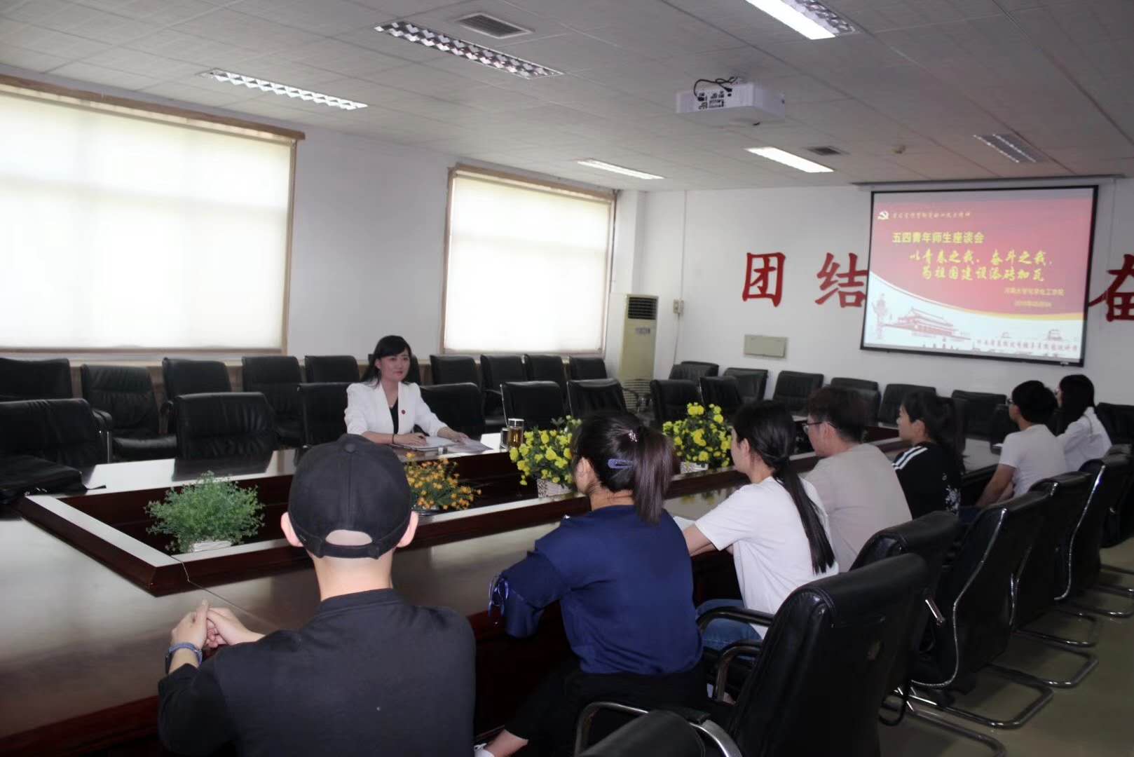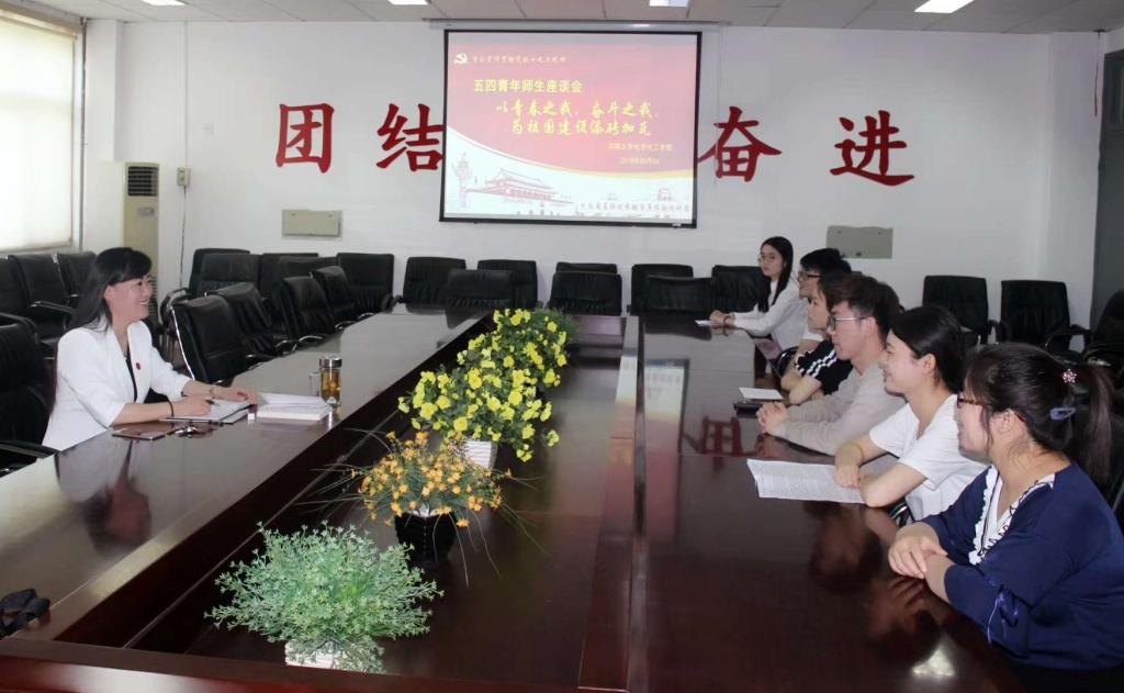 5月4日上午,在学院220会议室,本科生第一党支部召开了“以青春之我、奋斗之我,为祖国建设添砖加瓦”为主题的五四青年师生座谈会。支部书记王路娟与毕业生党员们亲切交流,她引导全体毕业生党员同志们传承“铁塔牌”学子的优良传统和学风,在新的学业和新的工作岗位上继续发挥党员模范和带头作用。