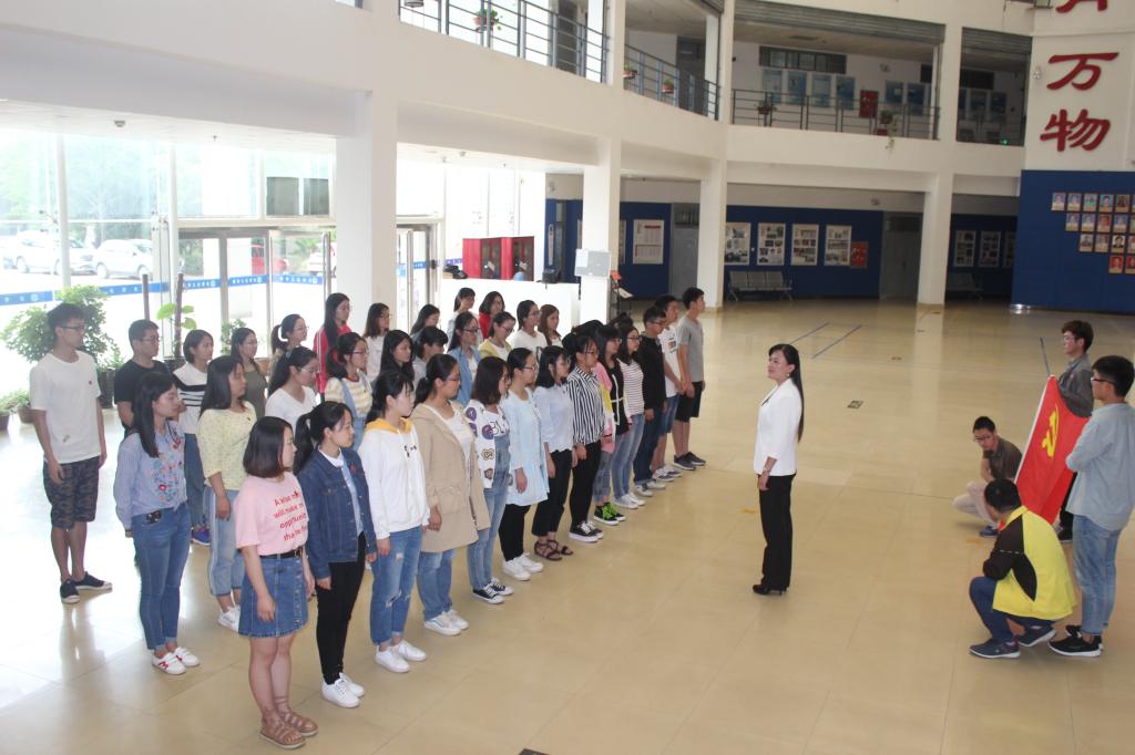 校歌,不舍之情溢于言表。随后,王路娟带领一支部全体党员在学院大厅重温入党誓词,嘹亮誓言响彻学院大厅。