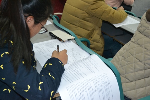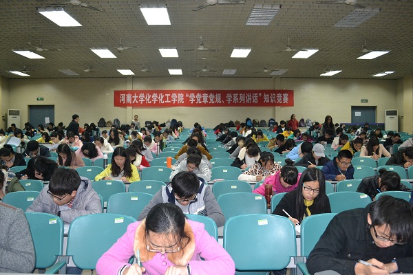 “两学一做”专题学习教育活动实施方案安排,使全体党员熟知熟记党章党规党纪知识。通过对学院全体教职工生进行专题辅导、课下自学的形式,认真学习了党章党纪党规和十八届六中全会精神。此次竞赛分别在学院226、518、522、学术报告厅等设置四个初赛场地。初赛以试卷答题形式进行,内容包含党章党规党纪和党的基本理论知识、习近平总书记重要讲话精神和党的十八届六中全会精神等。考前,教职工生认真学习,准备充分。考场上,每一名同志都一丝不苟、认真答题,考场秩序井然有序。