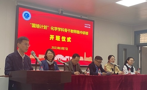 3月7日上午,“国培计划”化学学科骨干教师集中研修项目在化学化工学院226会议室举行。化学化工学院副院长孔军、院长助理许英教授、国培办主任蔡永红老师以及来自各地市近百名化学骨干教师参加了本次开班仪式,仪式由蔡永红主持。