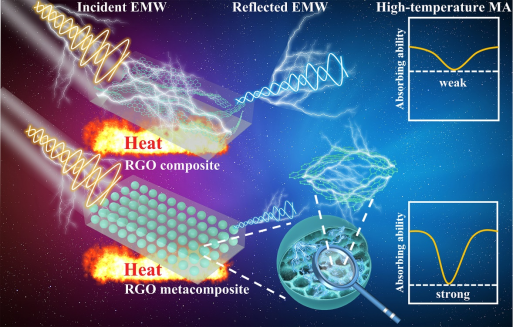 由于电子通信和军事隐身技术的发展,电磁波吸收材料在国防和经济建设中的地位日趋重要,尤其是随着应用领域的不断拓展,为适应复杂多变的使用环境,需要开发具有宽温域适应性的高效吸波体。由于材料的介电及导电性能都是温度的函数,在常温条件下满足阻抗匹配的吸波体系,往往会因为温度升高引起的电导率增加而阻抗失配,导致宽温域条件下,吸波性能难以稳定,这对材料体系筛选和结构设计都提出了更高的要求。本研究以亚波长尺度的石墨烯微球为吸波单元,将其离散分布在硅橡胶(PDMS)中构筑复合材料。功能单元的亚波长尺度及其离散分布保证了复合材料的宽温域阻抗匹配性能,实现了介电损耗性能与温度之间的“解耦合”。进而,借助功能单元内部的组成及结构设计实现超材料电磁波耗散能力及吸波性能的有效提升。该研究结合了传统吸波材料和超材料两者的优势,不仅为突破传统设计中介电损耗与阻抗匹配性能之间的相互牵制提供新的设计思路,也为高温环境下的微波衰减行为提供了一种简单有效的调制策略。