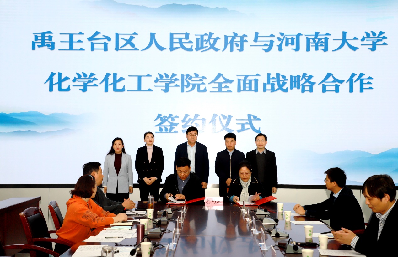 化学化工学院全面战略合作的序幕,希望双方以本次签约活动为基础,加强务实合作,不断推进合作内容更加丰富、合作步伐更加快速、合作成果更加丰硕,推动禹王台区经济高质量发展。