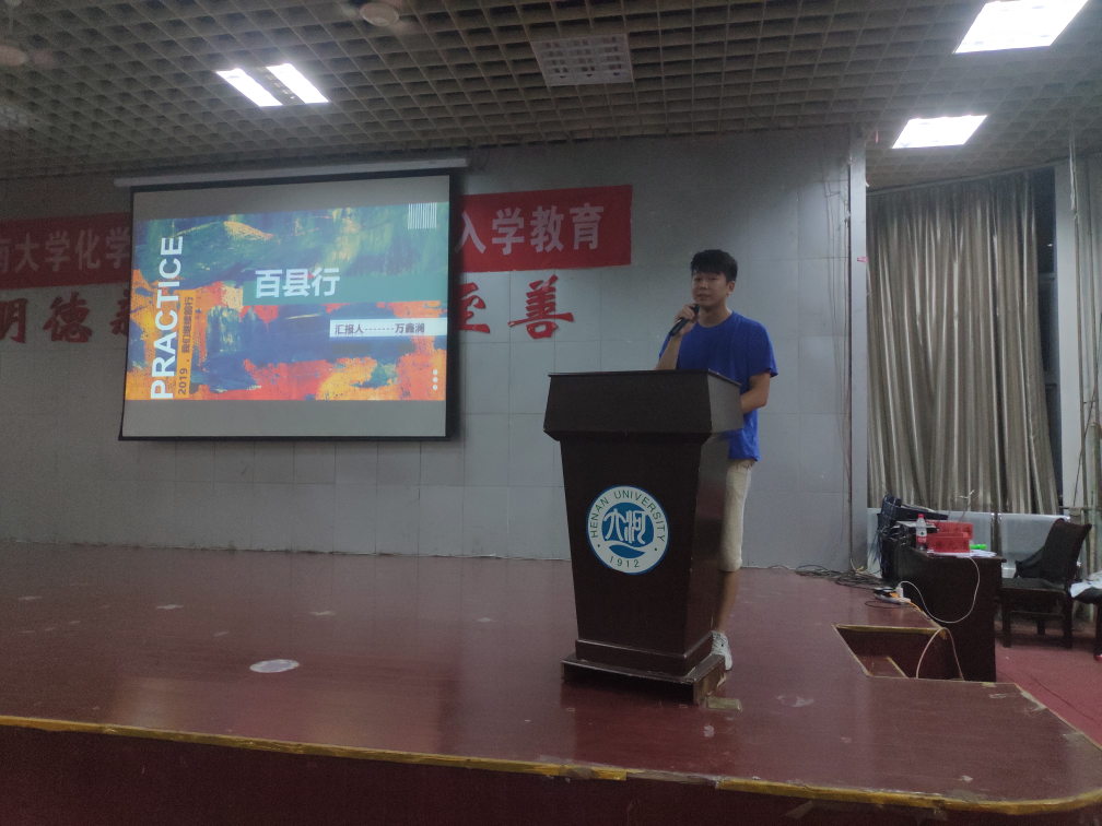 “重走红旗渠,再续创业梦”团队,成员代表卢明扬表示表示通过参观学习、访问和交流等实践环节成员们对于“自力更生、艰苦创业、团结协作、无私奉献”的红旗渠精神有了更加清楚的认识。“黄河水资源调研”团队,由鲁文超介绍成果,他们采集黄河水,研究水质变化,探索原因,宣传环保知识,为保护黄河贡献出自己的力量。“化之采”团队成员分别去到三个不同的地方,通过发放调查问卷,趣味化学小实验等方式向大众宣传化学知识,让大家更深入的了解化学,引导大众尊重科学知识。而“文明背包客”团队则是去到龙亭、天波杨府等开封市著名景区宣传旅游小知识,倡导文明旅游,积极引导大家共同维护景区环境,做到绿色出行,同时实践活动也得到了各景点以及社会的一致赞同。