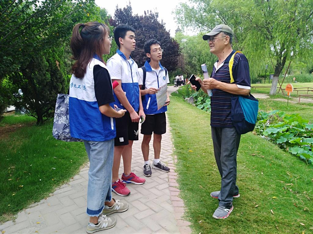此次实践活动,团队成员兵分三路展开。一支队伍自驾车前往郑州花园口采取黄河水样,以便与柳园口处黄河水质进行比较,确保后期水质实验时检测数据的客观性、分析结果的可靠性。另一支队伍前往开封市铁塔湖向游客宣传保卫黄河的科学知识,并与他们交流探讨,其中,来自三门峡市水利局的管理人员的疑问“距离黄河较远的人应该采取怎样的措施保卫黄河”发人深省,更使成员们意识到宣传保护黄河的重要性与迫切性,保卫黄河是无数中华儿女殷切的希望。最后一支队伍在八叉书库