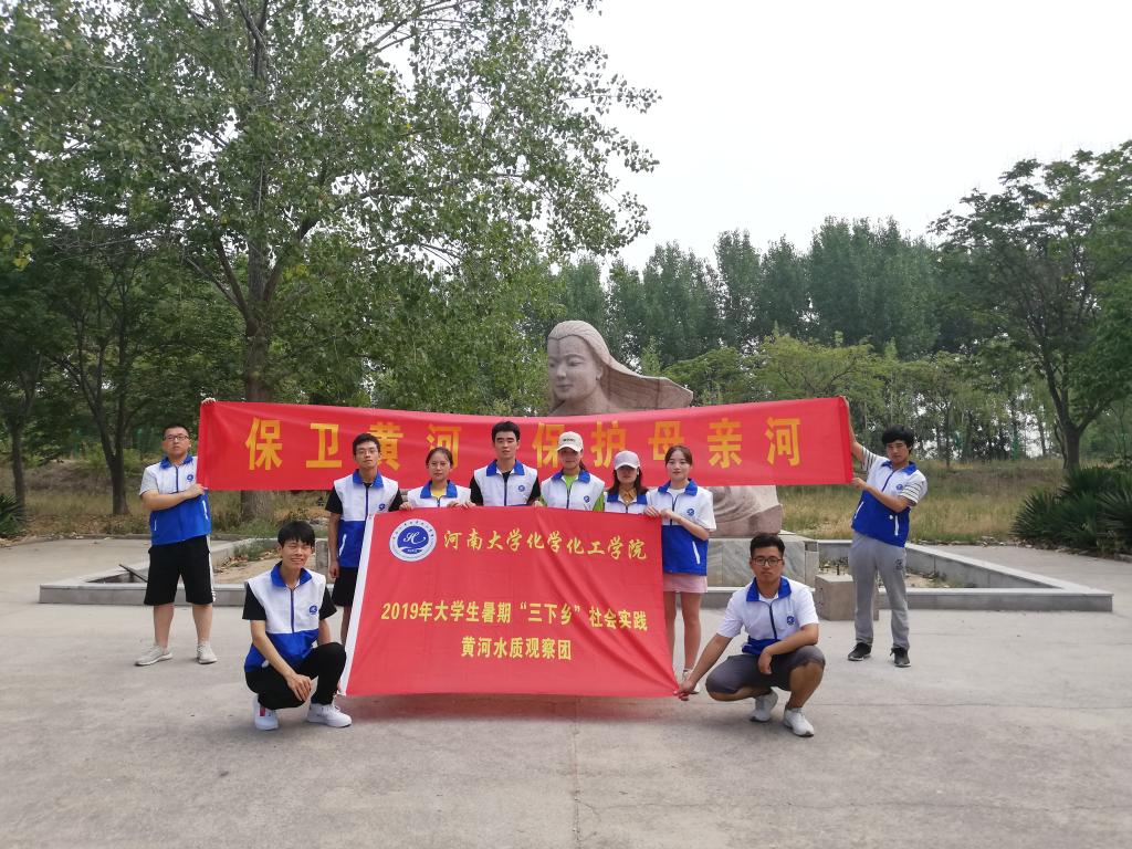 黄河水质调研团全体成员在化工院门口举办出征仪式,指导老师张凌强调相关事宜,并寄语活动能顺利开展。之后,队员们前往第一站——黄河流经地柳园口开展暑期实践活动。