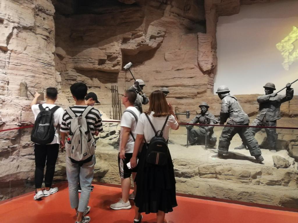 在红旗渠景点参观学习之后,7月14日,“红色之旅”暑期实践团队到达第二个目的地——红旗渠纪念馆。据了解,纪念馆乃是为纪念林州人民修建红旗渠这一伟大创举而建。