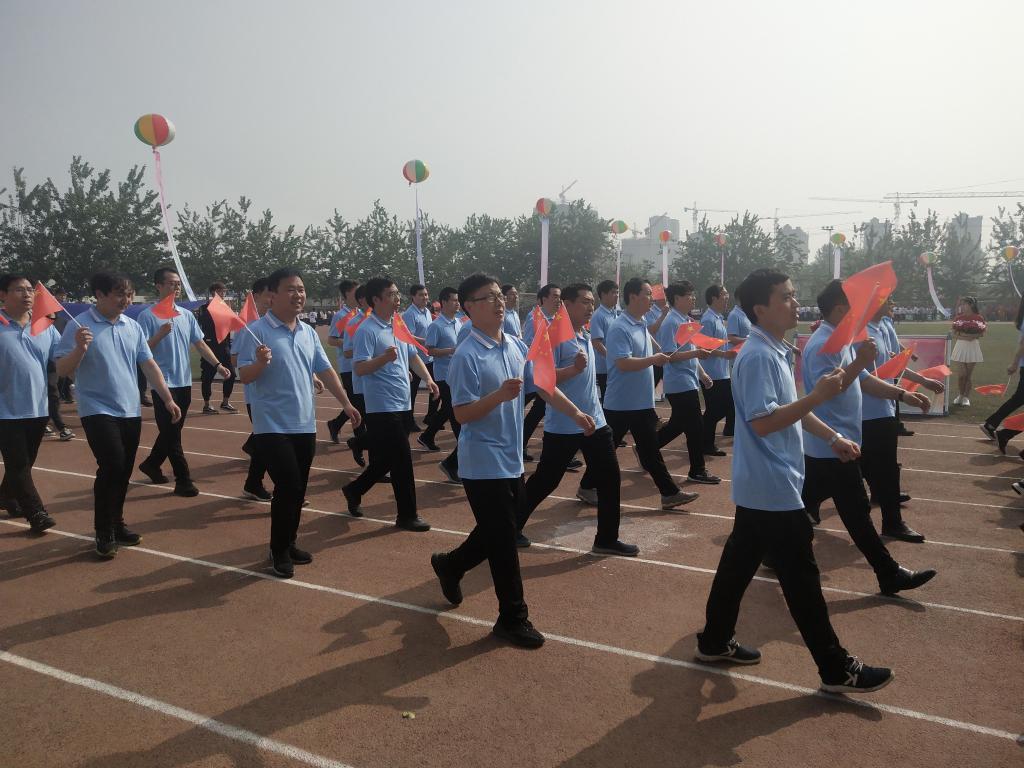 代表队首先走向主席台的是以党委副书记马文海为领队的教职工方阵,他们精神抖擞,身着统一服装,手中挥舞着红色国旗,表现了八叉书库