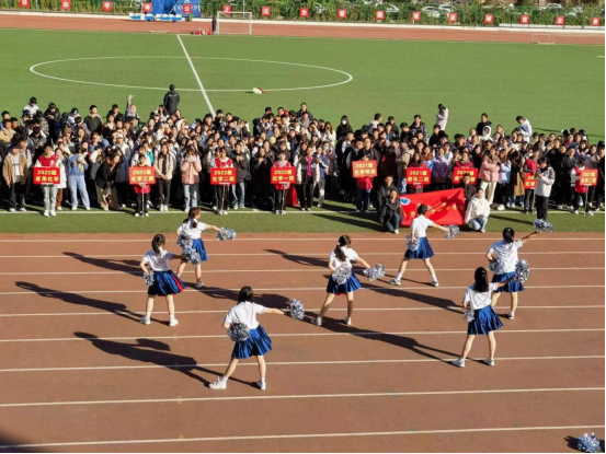 院旗入场式,同学们进行了精彩的表演。在雄壮的国歌声中,秋运会开幕式拉开帷幕。常凤香致开幕词,她表示,运动会是展示精神风貌、发扬体育精神、增强凝聚力的大舞台,运动员们是舞台的主角,裁判员、观众和拉拉队员们亦是这个舞台的重要组成部分,鼓励同学们在比赛中发挥拼搏精神、团队精神、公平竞争、友谊第一,赛出成绩,赛出风格!朱冀代表校体委讲话,他介绍了学校秋季运动会的举办情况,强调了体育运动的重要性,要求大家培养终生运动的意识,并预祝本次运动会圆满成功。随后,运动员代表和裁判员代表依次上台宣誓。常凤香宣布运动会开幕。